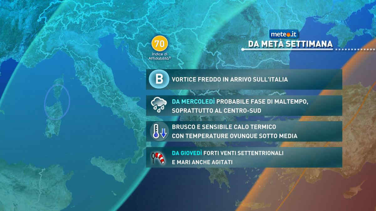 Le temperature medie per questa stagione si aggirano fra i 15 e i 22 gradi Celsius. Il sole è previsto con maggiore intensità nei giorni di sabato e domenica, mentre è atteso un abbassamento delle temperature a partire da lunedì, con la possibilità di piogge di scarsa intensità nel corso della settimana successiva.