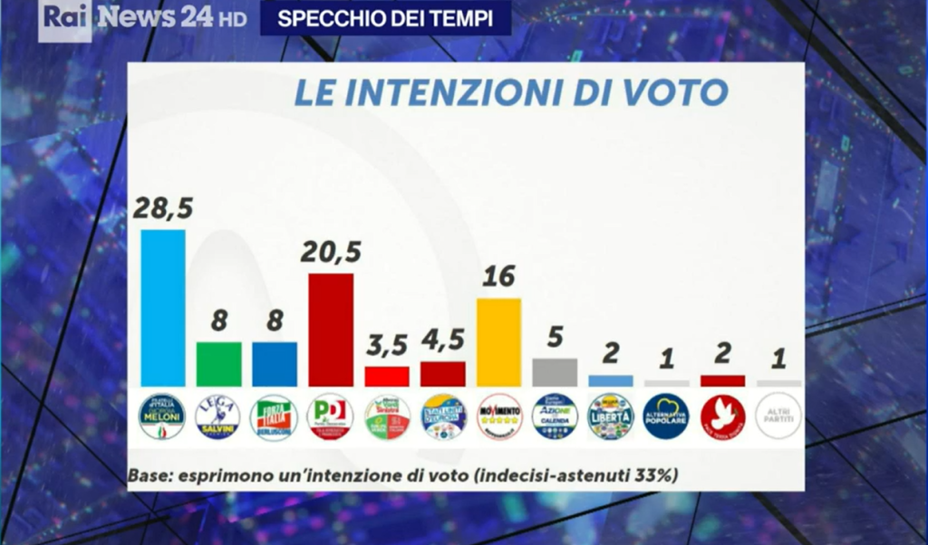Secondo gli ultimi risultati pubblicati a ottobre 2023, il sondaggio Piepoli ha rivelato un incremento nella popolarità dei partiti di centrodestra, in particolare della Lega e di Fratelli d’Italia, che insieme superano il 40% del consenso. Tuttavia, il Partito Democratico mostra segni di recupero, con un aumento della fiducia da parte degli elettori di centrosinistra. Inoltre, la destra italiana sembra aver conquistato molti giovani elettori, un dato significativo che potrebbe influenzare il risultato delle elezioni.